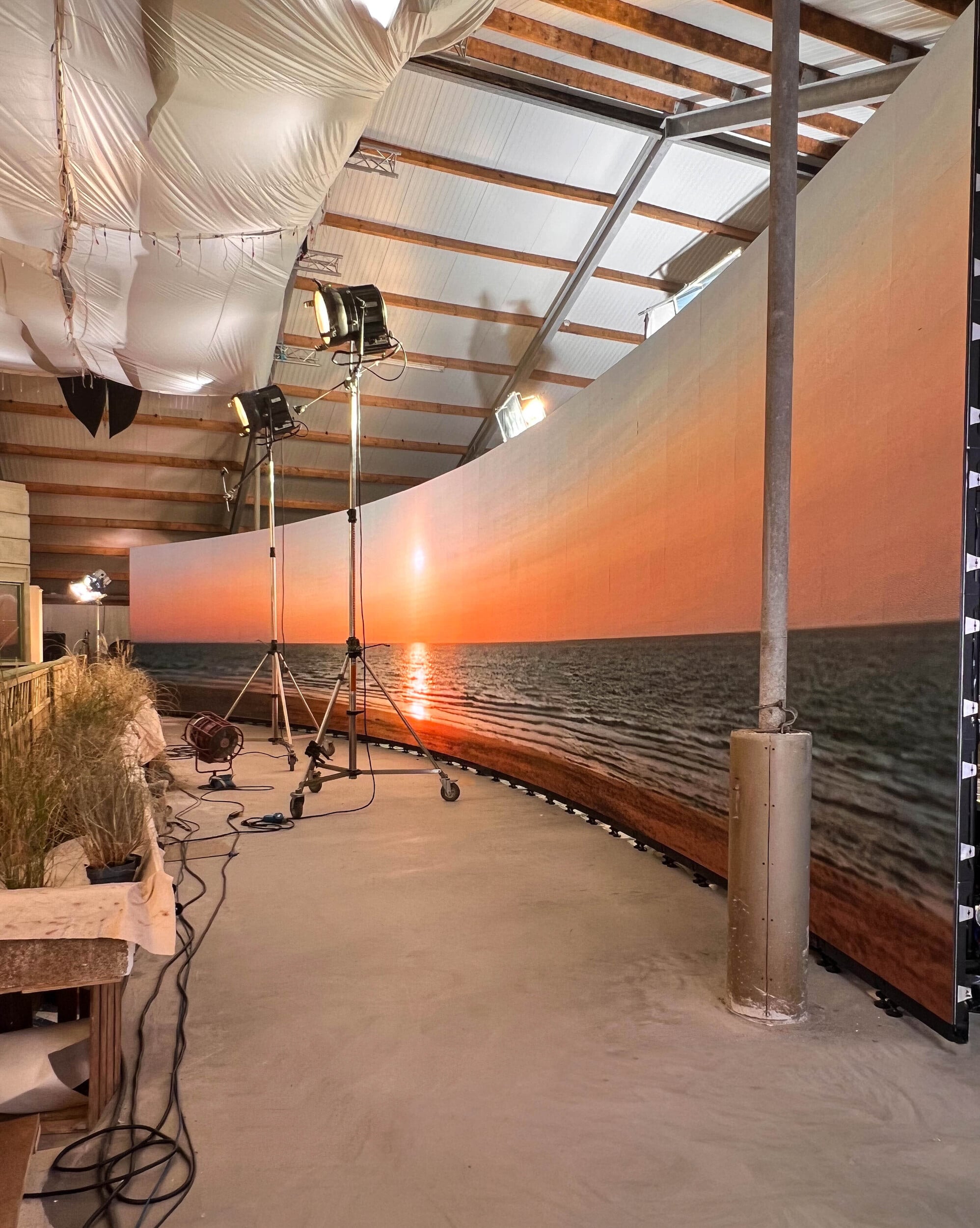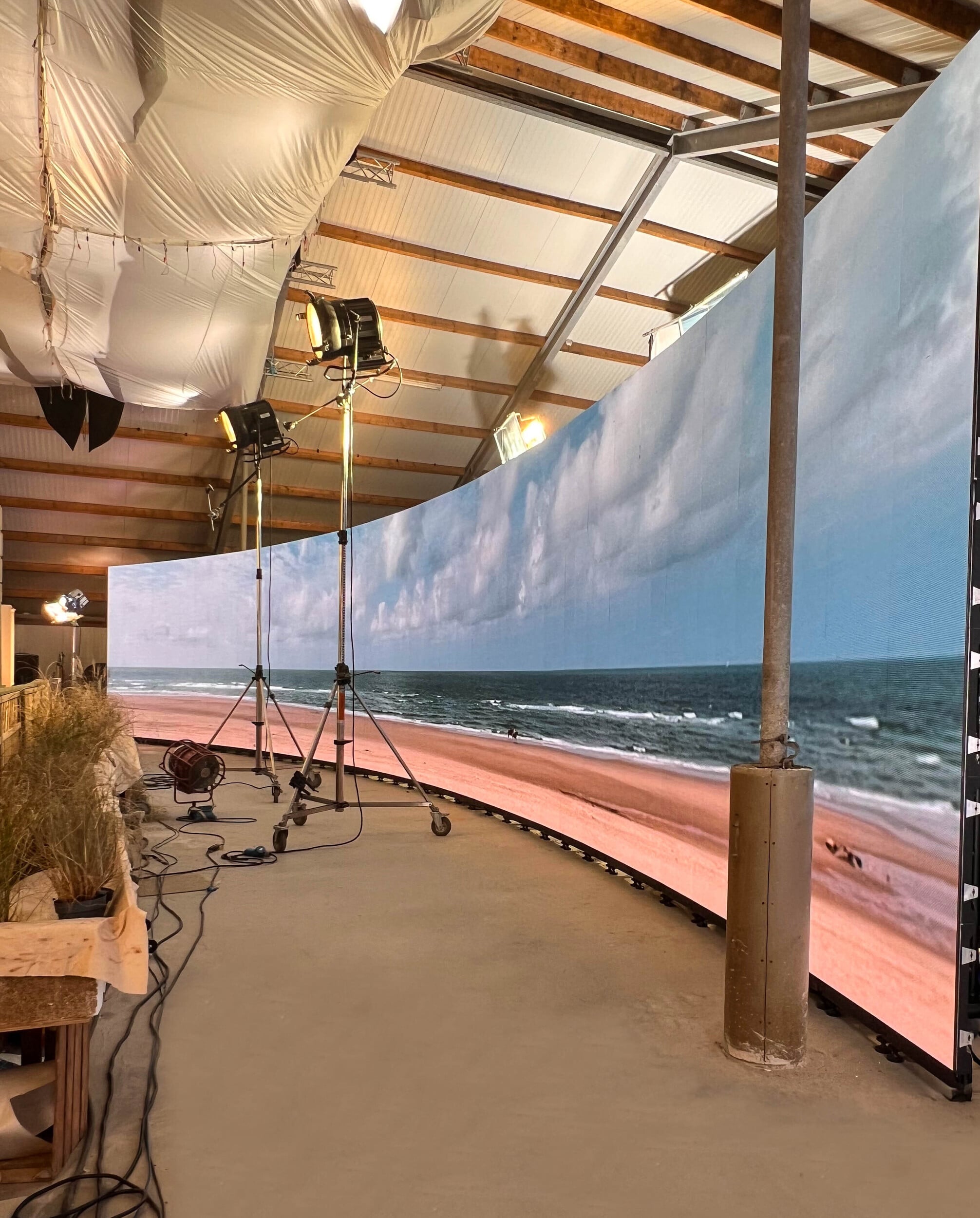 Voor Grand Hotel aan Zee is een grootse studioset gecreëerd, waarin het complete interieur van het hotel is gebouwd. Van de imposante lobby en sfeervolle dinerzaal tot hotelkamers en gangen. Alles is zorgvuldig vormgegeven en tot in de kleinste details tot leven gebracht. Zo ook de buitenwereld, die met behulp van onze hoogwaardige LED-wall van 20 meter breed en 3,5 meter hoog realistisch kon worden geprojecteerd en naadloos samensmolt met het decor.