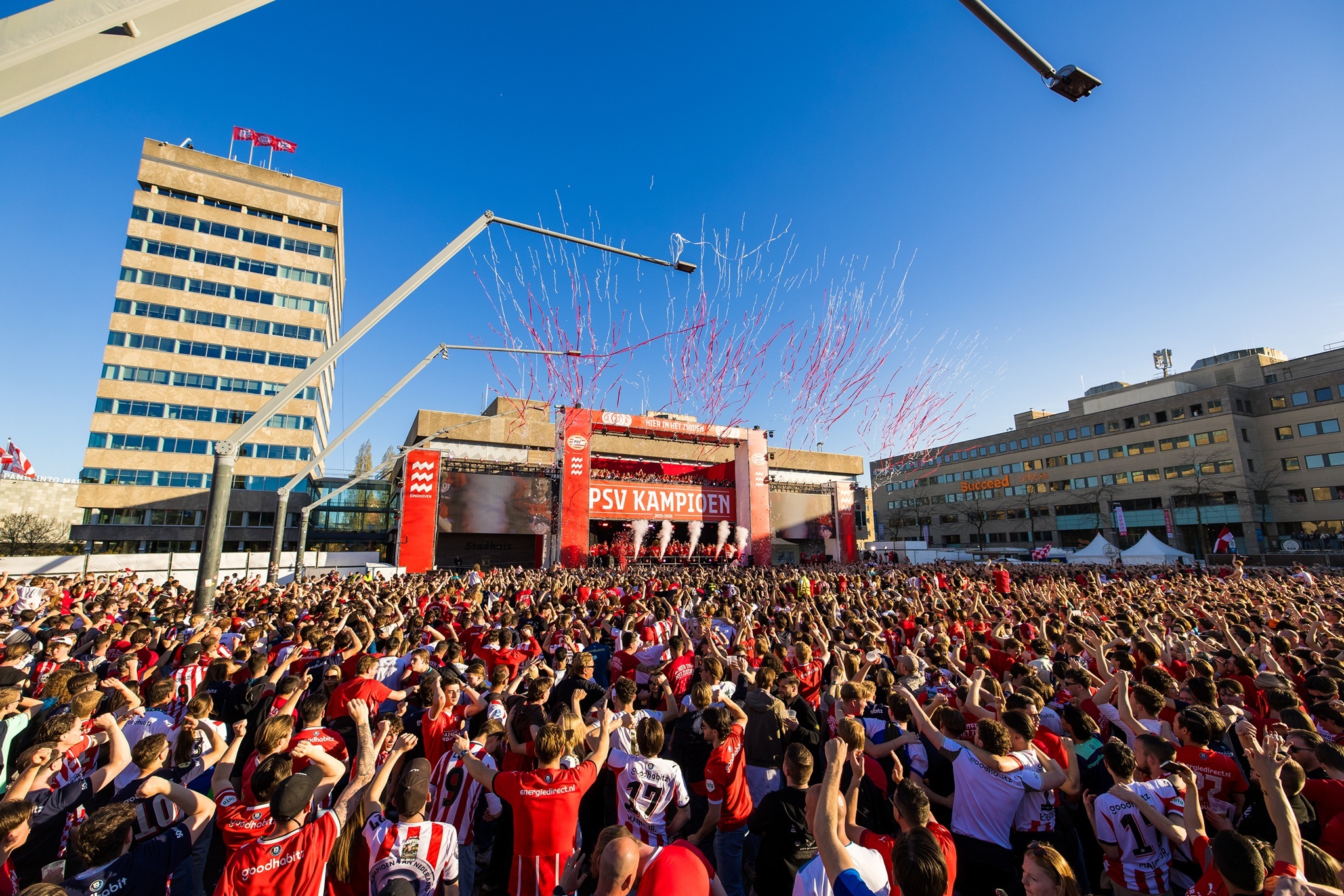 Op het Stadhuisplein, waar de officiële huldiging plaatsvond, genoten duizenden supporters van de club van onze techniek, terwijl ook op alle andere pleinen in de stad massaal werd meegeleefd, gevierd en genoten van het 27ste kampioenschap.