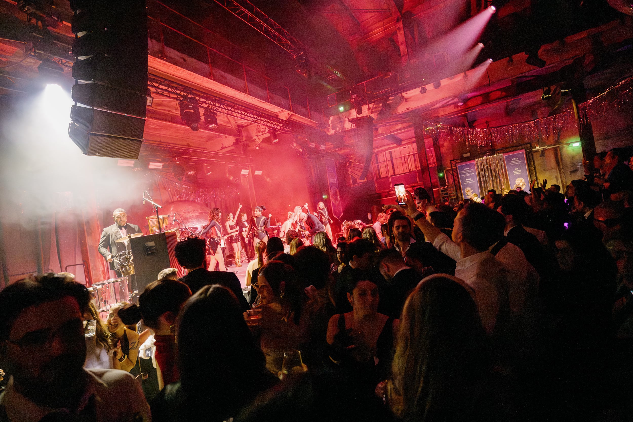 Na het diner transformeerde de ruimte volledig: de gasten verplaatsten zich naar het feestgedeelte waar, achter een groot doek, een live band en DJ zorgden voor een knallende afsluiter.