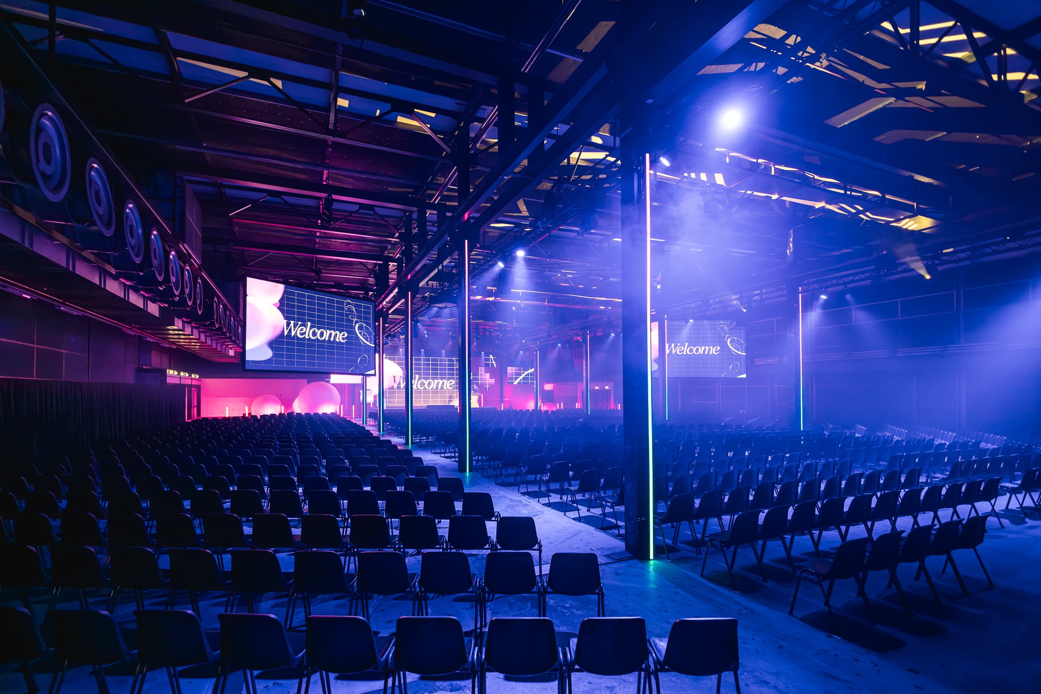 De hoofdzaal vormde het middelpunt van het event. Samen met de organisatie ontwikkelden we een creatief LED-ontwerp, met schermen van 2.9 mm pixelpitch die zorgden voor een haarscherpe contentweergave. Daarnaast werd deze ruimte voorzien met maar liefst 24 Meyer Sound Leopard line-array speakers, 8 (900LFC) subwoofers en Ultra X20 speakers voor een garandeerde een optimale spreiding en dekking in de gehele zaal.